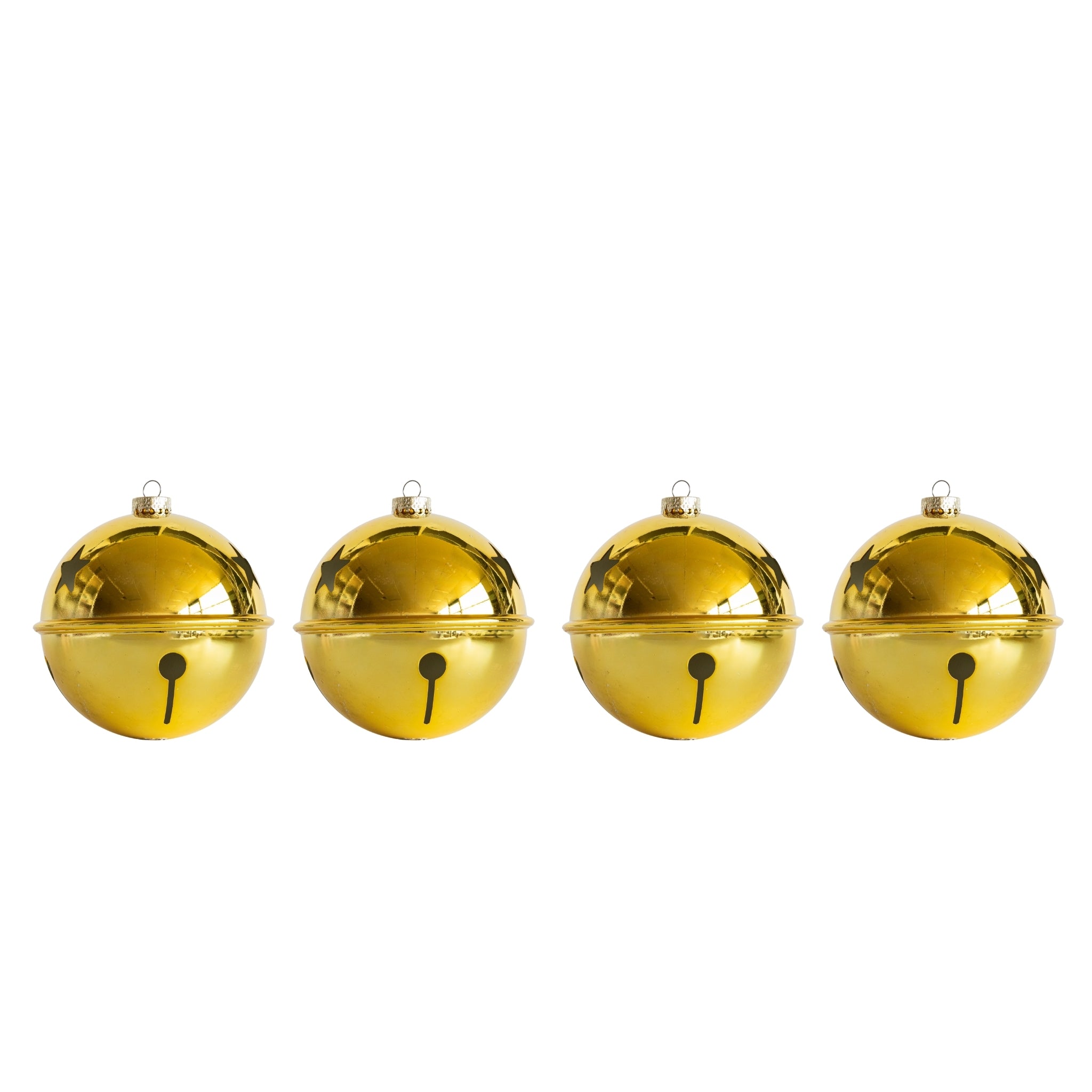 This set of decorative gold Christmas bells, featuring star cut-outs, adds a warm and elegant touch to your tablescape. Tie a ribbon through the top to create the perfect decorations for a magical Christmas tree.