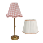 Blush Gingham Scallop Ruffle Lamp Shade & Gold Base - USB Table Lamp + FREE Pink Trim Shade