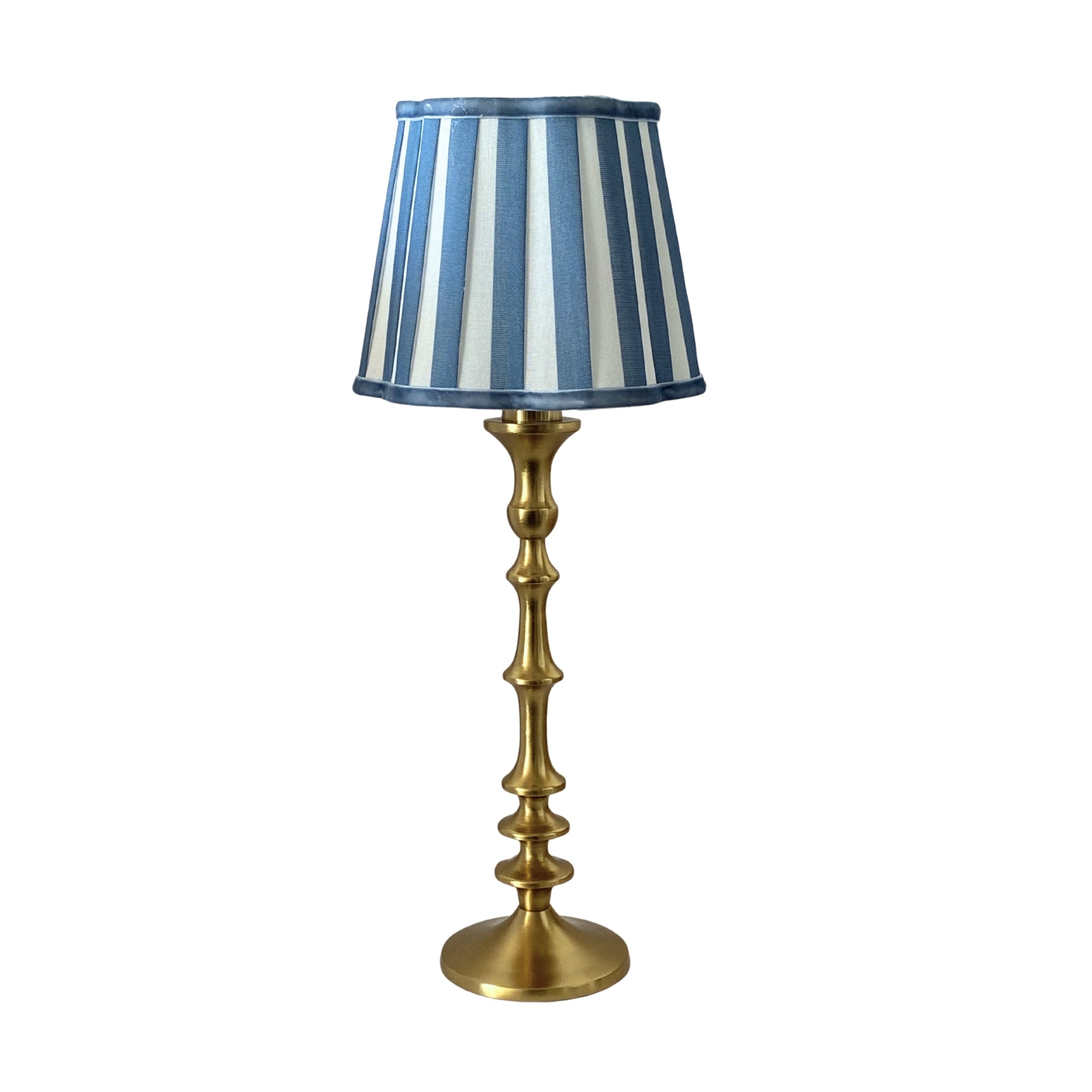 Ocean Blue Stripe Scallop Lamp Shade & Brass Base - Table Lamp