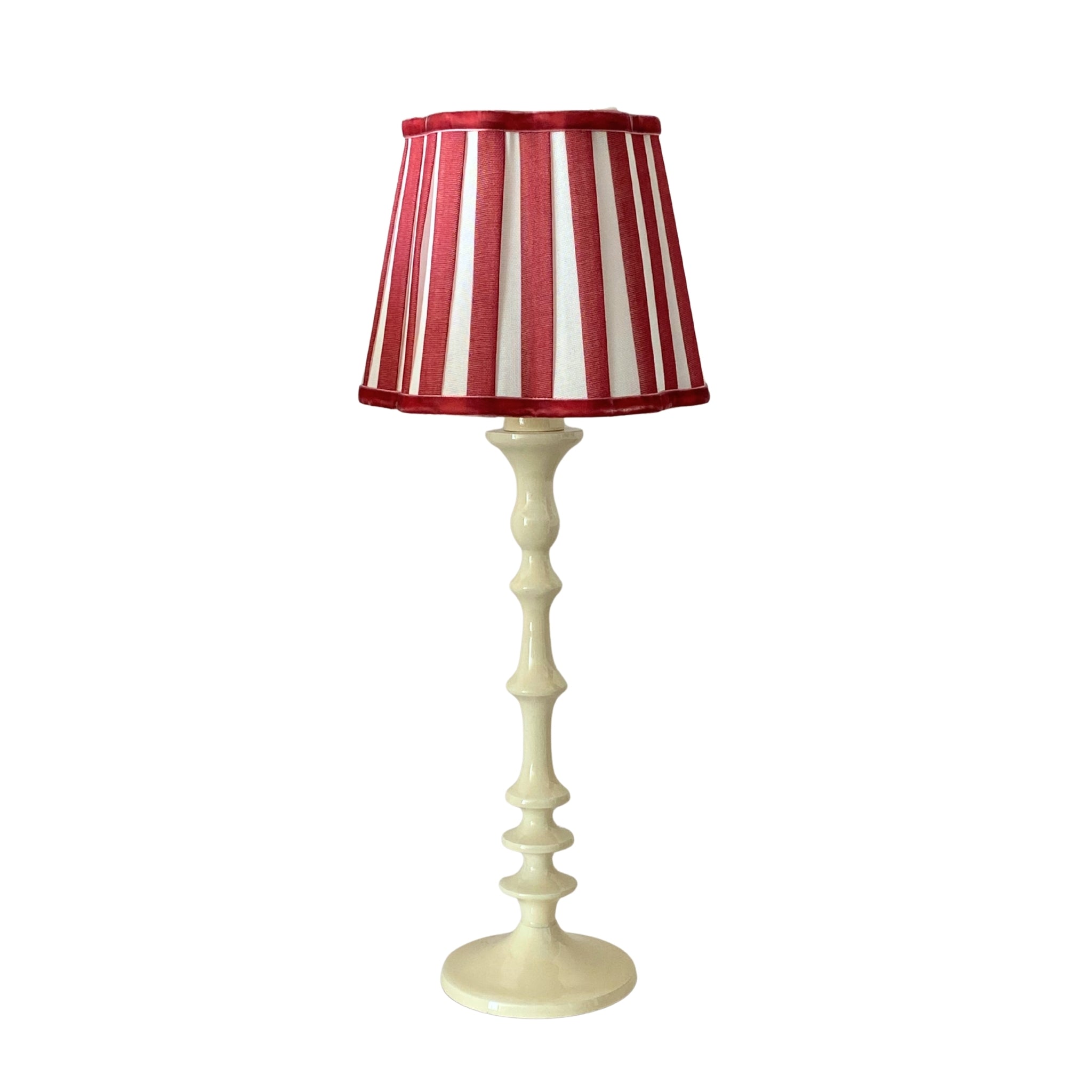 Red Stripe Scallop Lamp Shade & Ivory Base - Table Lamp