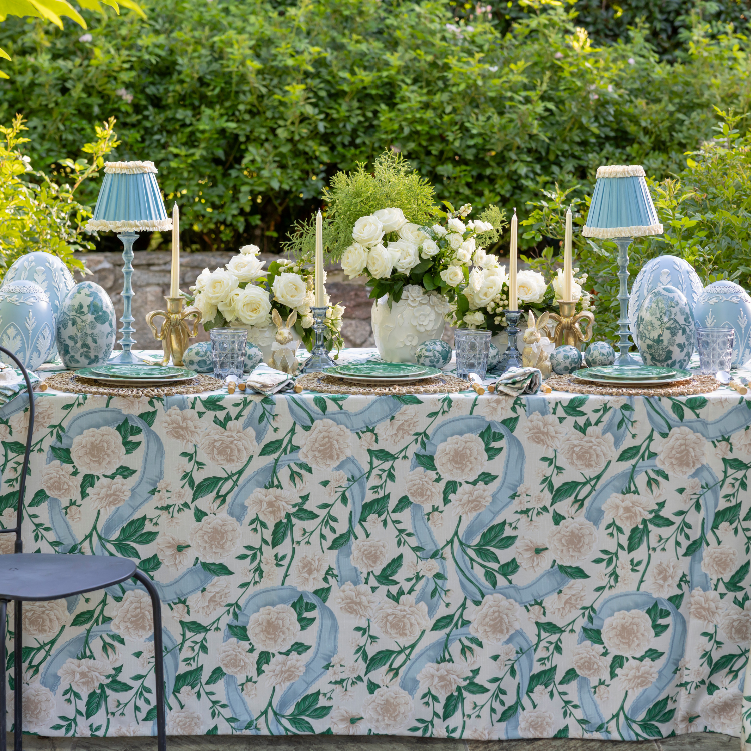 Introducing Luxe and Beau's Sky Blue and Cream Ruffle Lamp Shades. Paired with our cordless Ocean Blue Lamp Base, it is elegance made easy. The base comes with one rechargeable globe with 15-20 hours of battery life. The included USB charging cord makes recharging effortless.