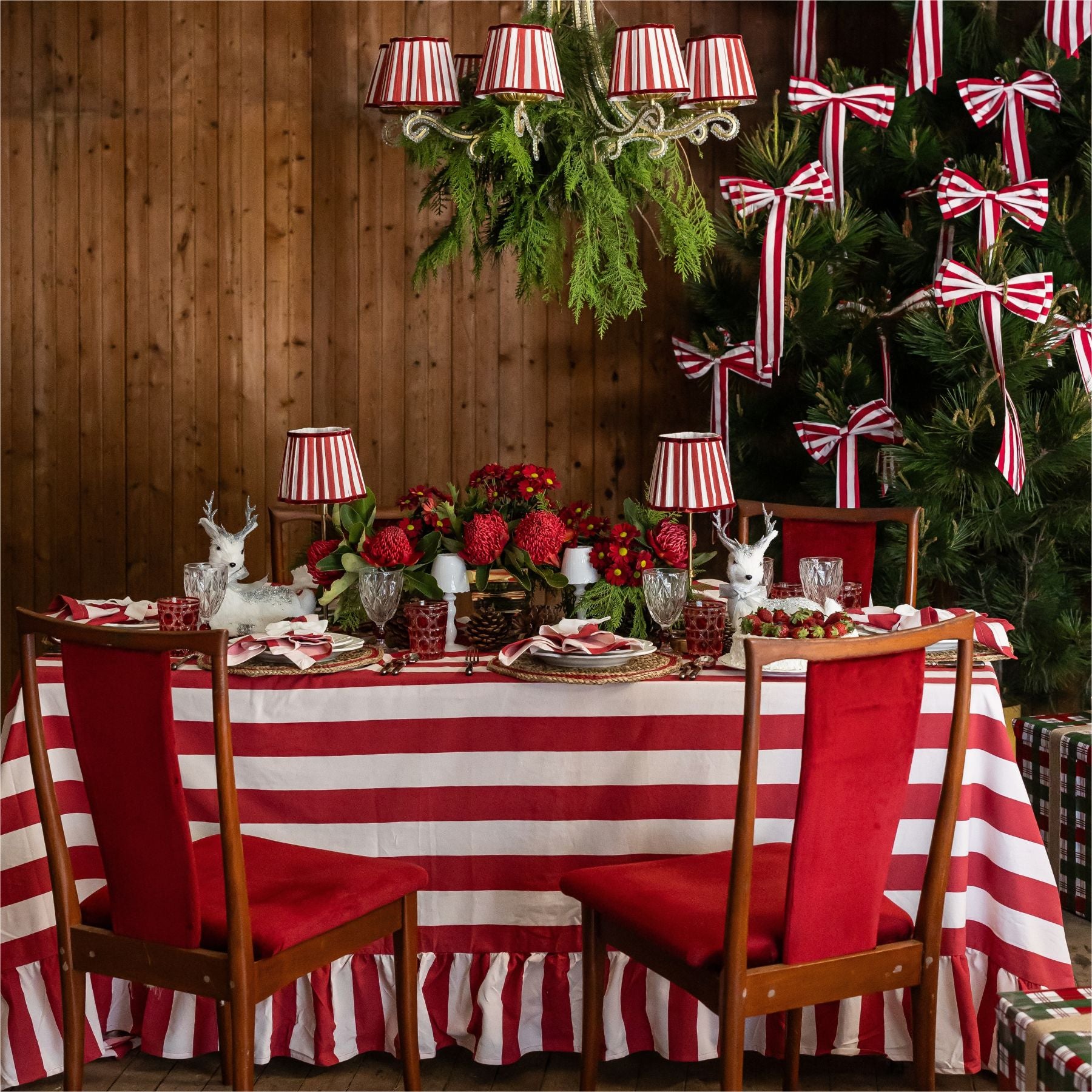 Bring a touch of festive elegance to your Christmas celebrations with our Rouge Ruffle Stripe Table Cloth. Made from 100% pure cotton, this charming table cloth is available in two sizes: 3m x 1.8m and 3.6m x 1.8m, perfect for adding a cheerful touch to your holiday table.