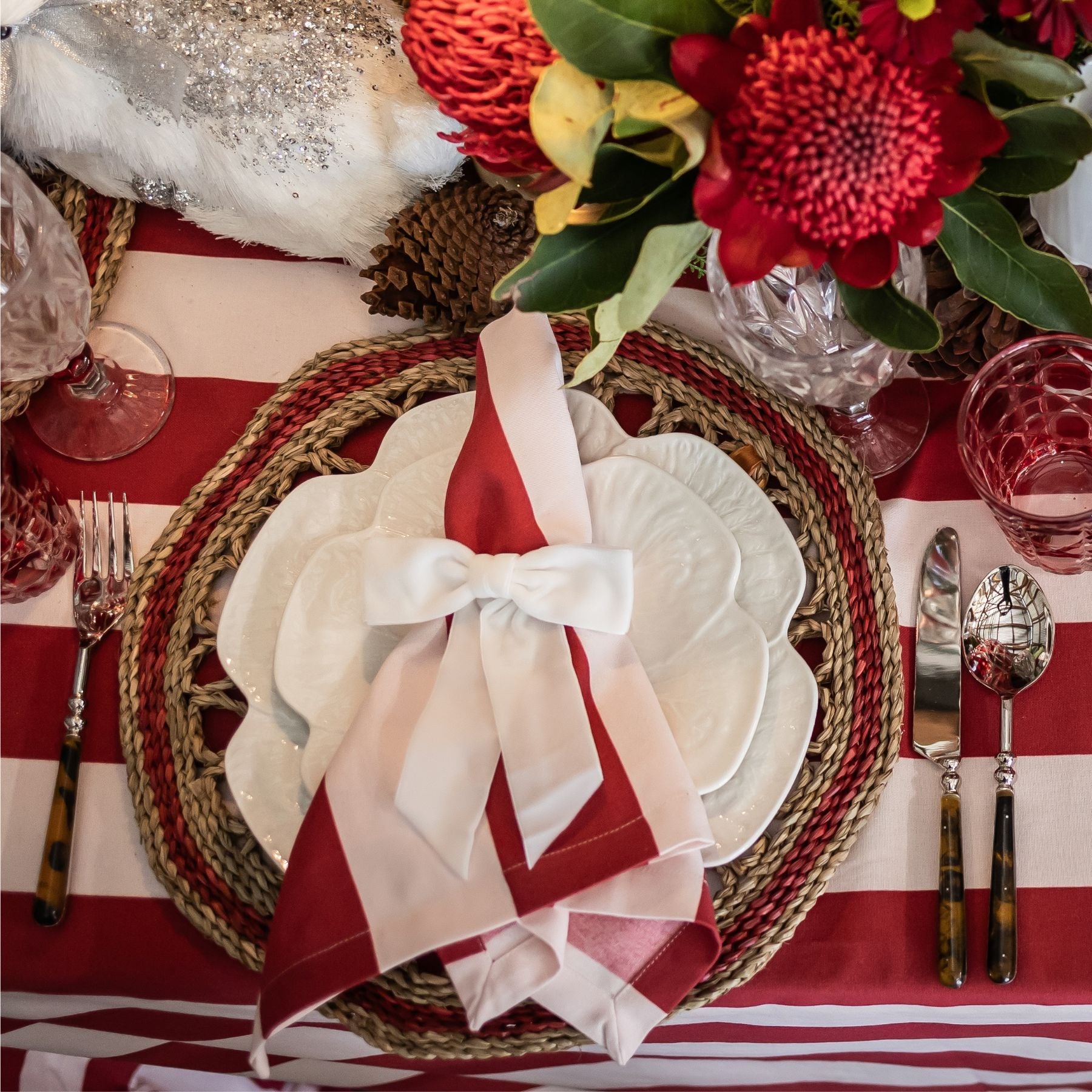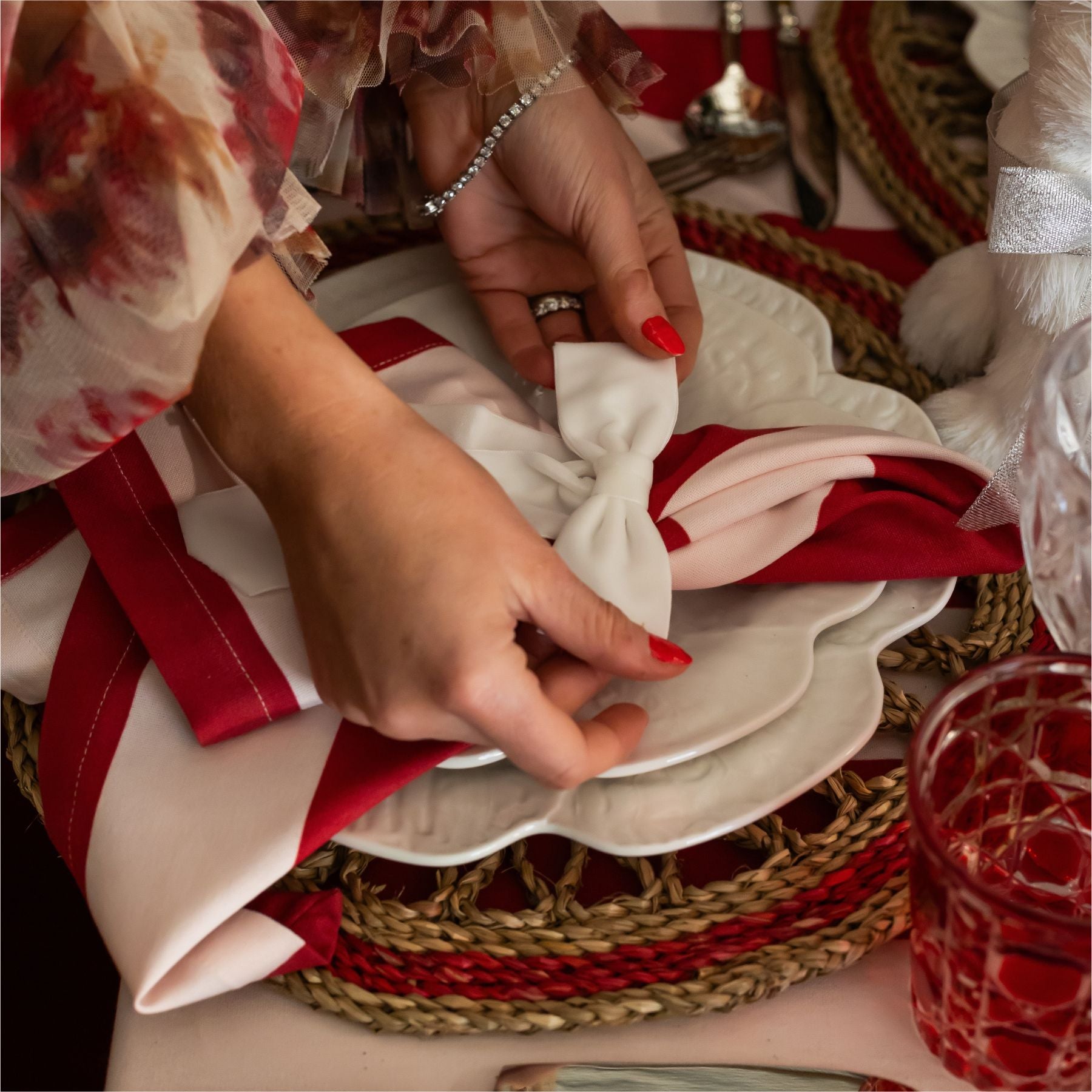 Add a festive touch to your holiday table with Luxe and Beau's napkin sets. Featuring elegant designs, these napkins are crafted from 100% cotton, making them the perfect blend of style and practicality for your Christmas celebration.