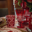Introducing our exquisite ruby red cut glass goblets, elegantly adorned with a lustrous gold rim. These stunning pieces are the perfect addition to your table this festive season, embodying a timeless charm that you’ll cherish for years to come. Crafted from fine glass, these goblets bring a touch of old-world elegance and opulence to any gathering.