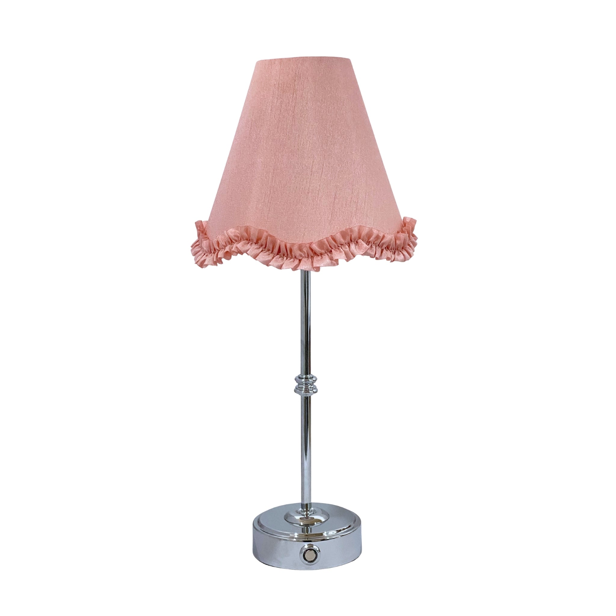 Blush Ruffle Scallop Lamp Shade & Silver Base - Usb Table Lamp